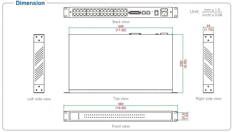 - Size: standard 19 inch, 1u height